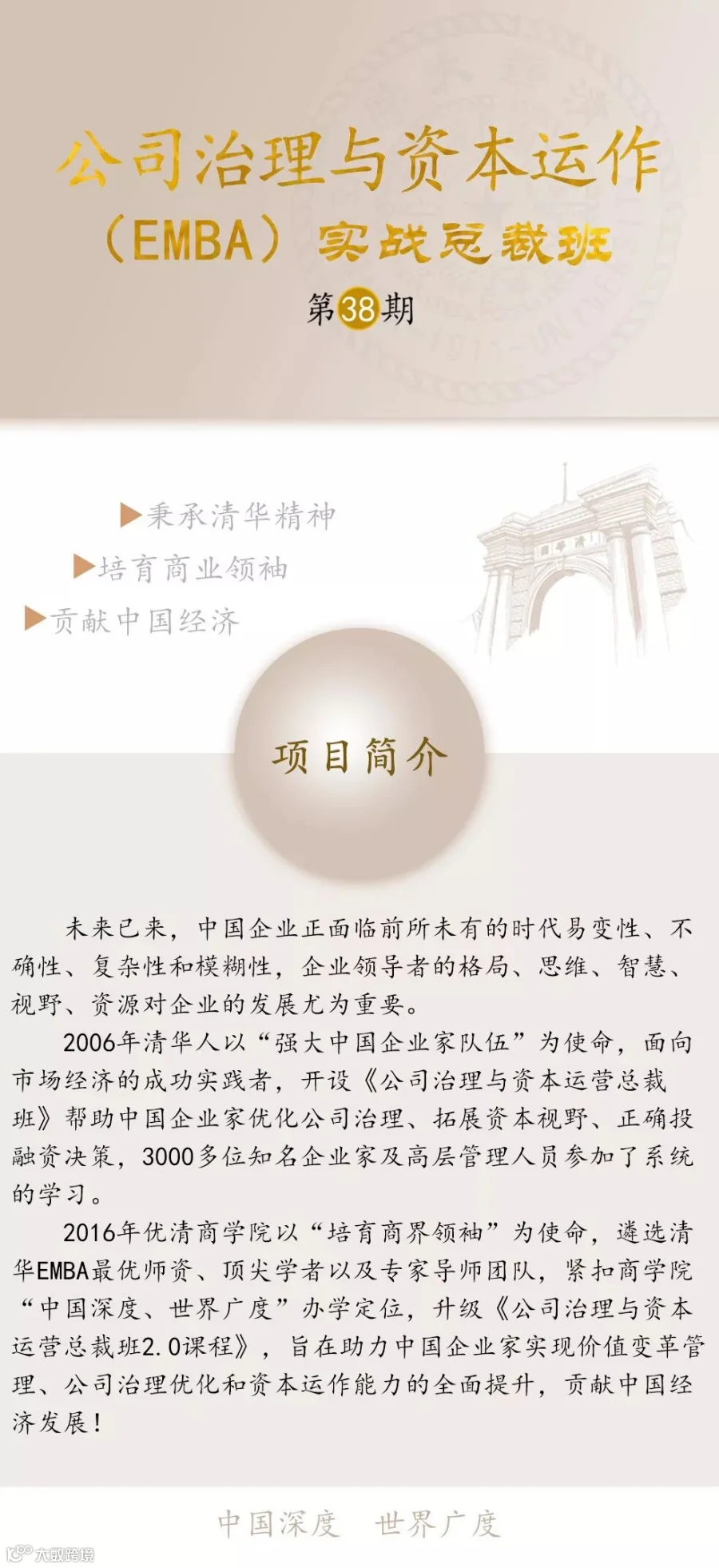欢迎加入:公司治理与资本运作(EMBA)实战总裁班