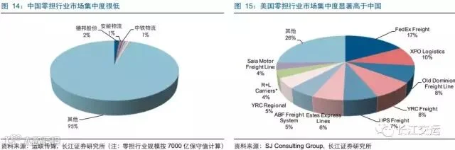 目前,中国零担行业市场集中度呈现“一超(德邦股份)多强(安能物流、中铁物流等)”格局。但和发展更加成熟的美国零担行业相比(美国零担行业市场集中度CR5超过50%),中国零担行业市场集中度很低。未来随着网络型零担企业的迅速发展,在资本助力下,中国零担行业集中度提升空间广阔。
