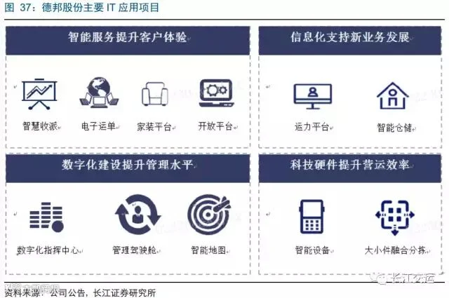 2017年公司拟针对快运与大件快递合网运营的特点,首创业内第一套大小件融合的多层立体分拣系统,有效提升了场内流通效率和场地承载,目前已在武汉转运场正式运行。预计2018年将逐步在全国推广应用,对缩短全网运行时效、夯实德邦大件快递市场基础、提升运营效能、实现行业领先地位具有重大意义。