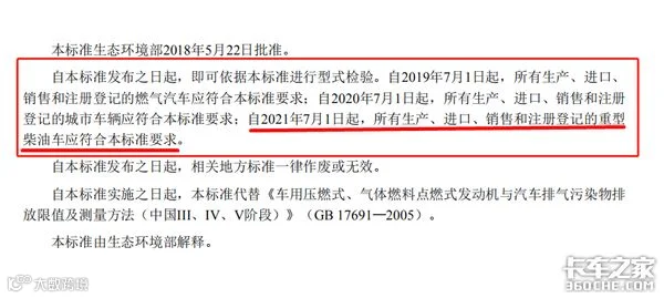 新发布的《重型柴油车污染物排放限值及测量方法(中国第六阶段)》对国六排放标准的实施时间点进行了严格限定。