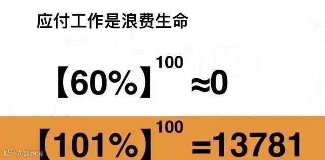 上司交给你一项工作,你做到60分并不是一件难事,领导既不会骂你也不会夸你。如果你每天都是如此盲目而应付的工作,你的生命就在平淡中白白浪费了。每件工作都尽可能做到超出公司的要求,即使只有一点点,长期积累下来,你就比那些混日子的人超出成上百倍。差距,就是这样拉开的!