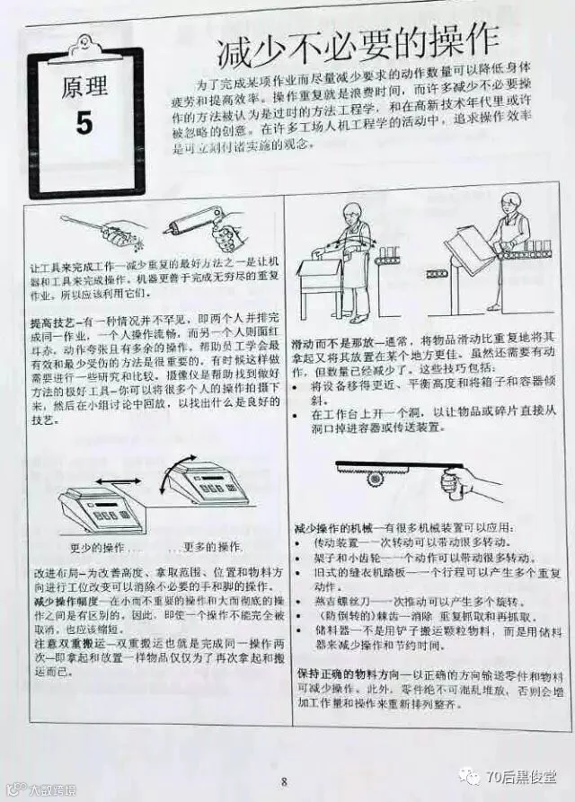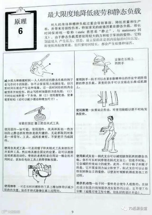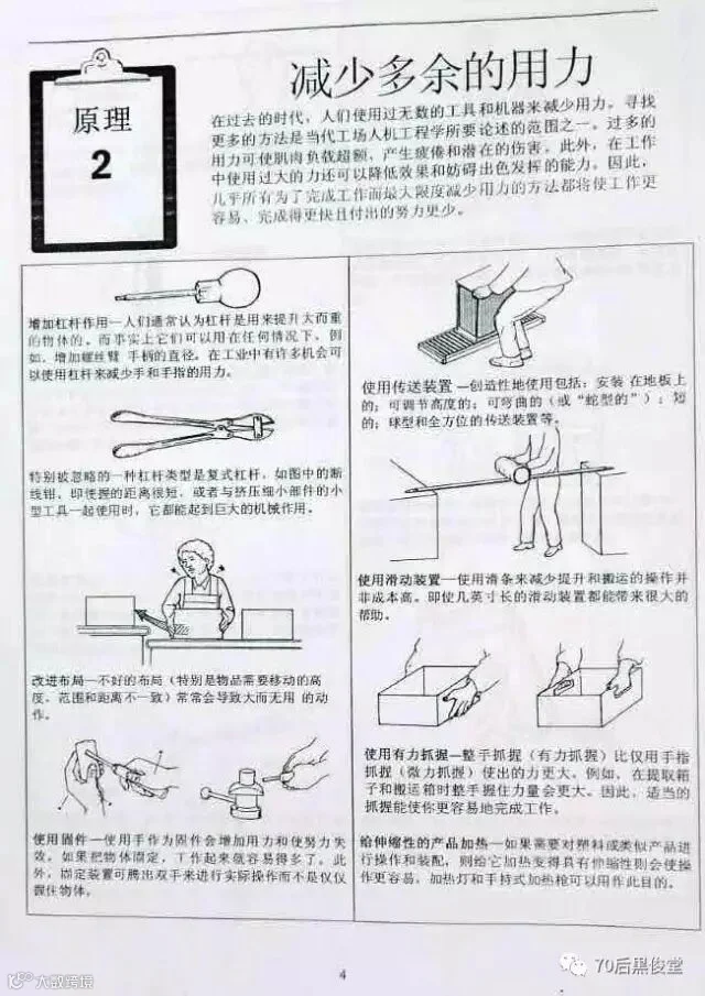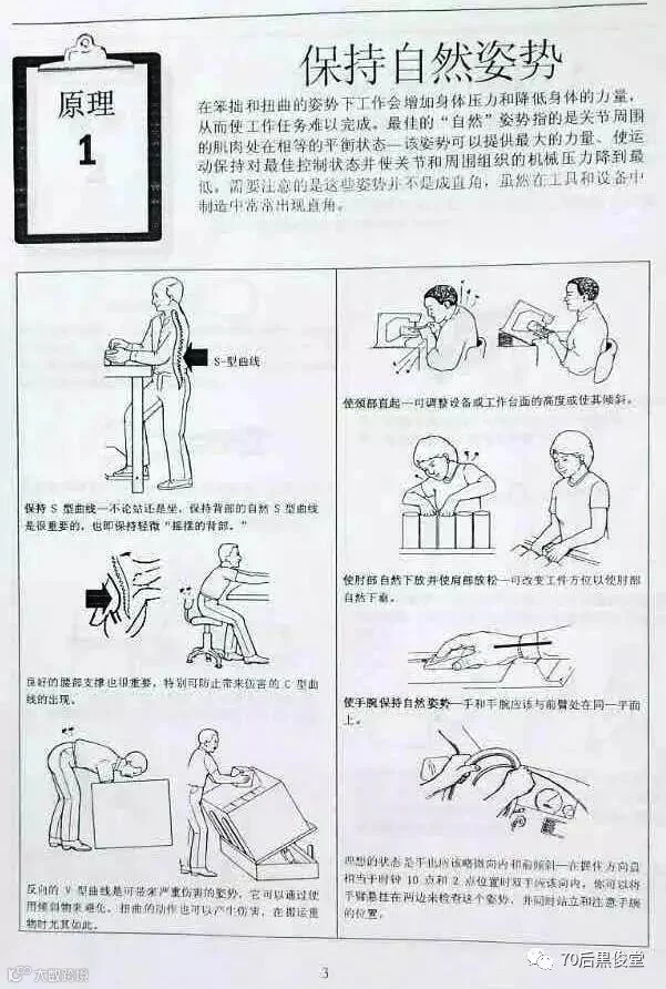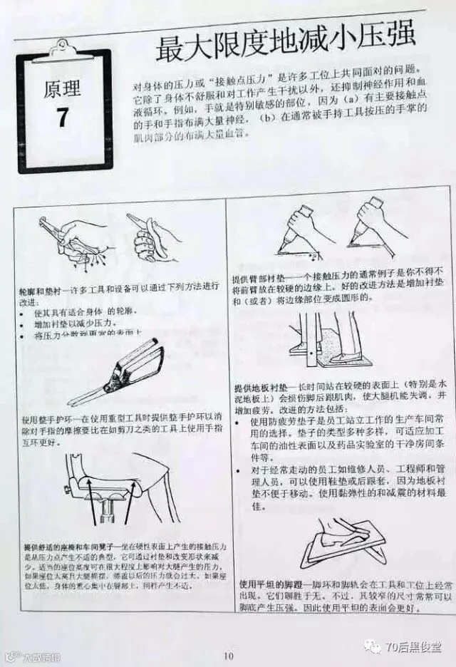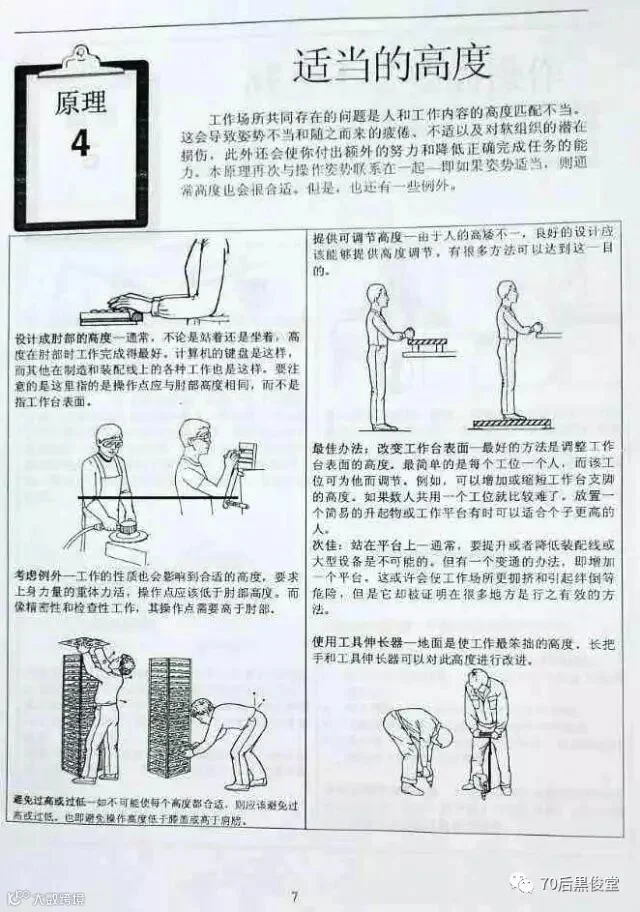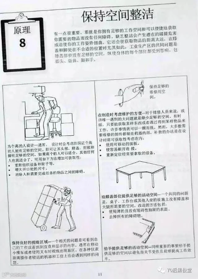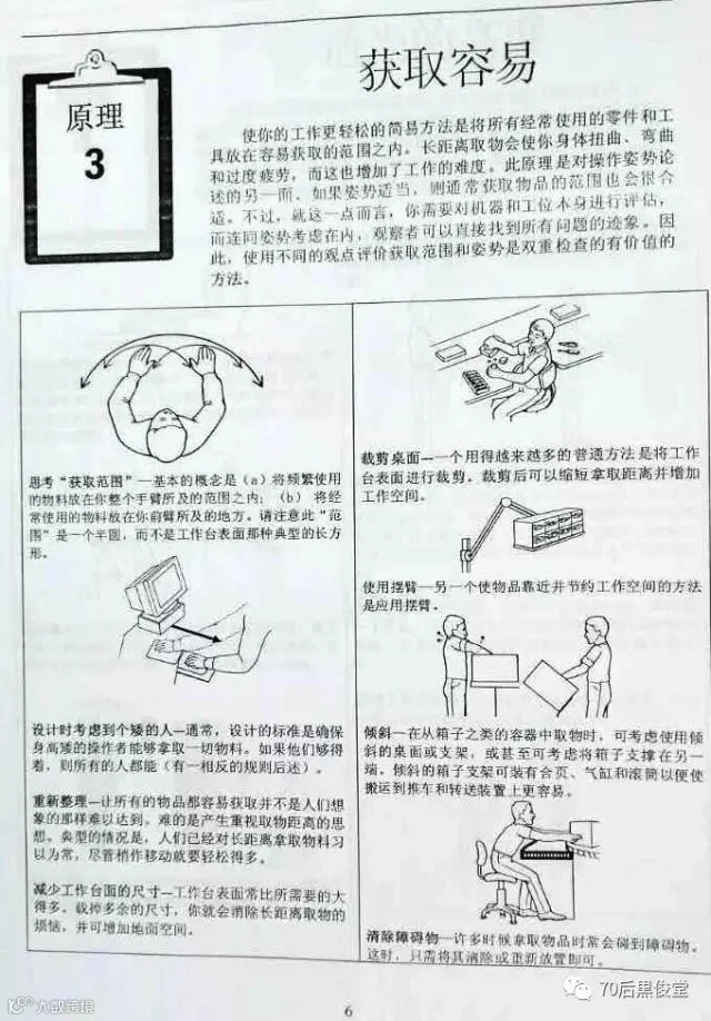 胖胖虎在公司里面做Lean Chamion 的时候,负责了公司的工作,其中一部分是负责公司“人机工程学改善”工作。说道这里想起,有朋友在这篇文章后面留言,说公司专门安排一个人去运转这个精益战斗室,太土豪了。想起这个梗,就很伤心,胖胖虎可是干不少工作的啊。开个玩笑了,朋友能给留言就是对本公众号“70后黒俊堂”的支持,证明他仔细看文章了。
