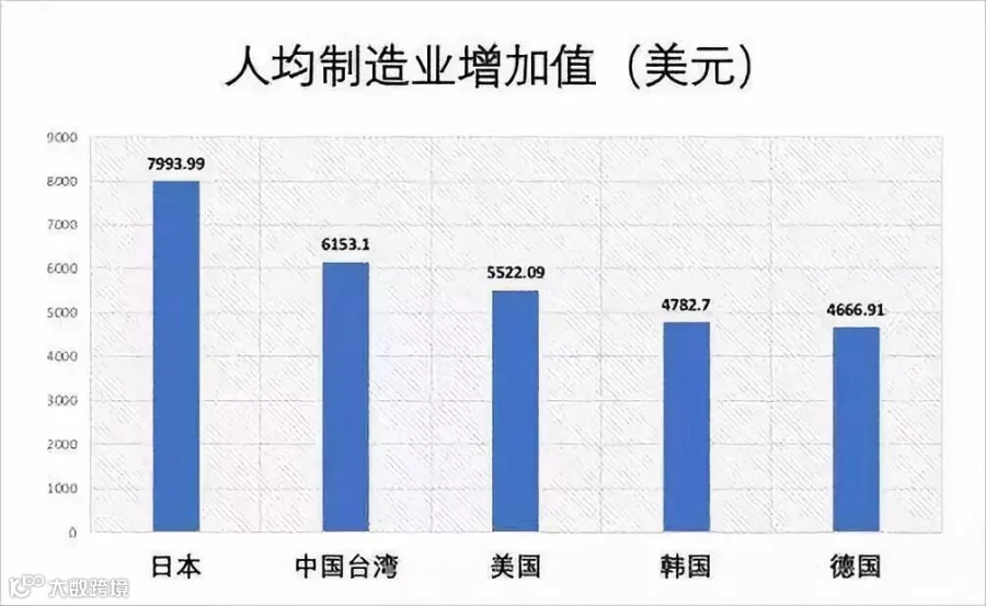 中国(大陆)约等于日美德的1/3到1/4,反而是台湾省的表现能刷新不少人的成见。