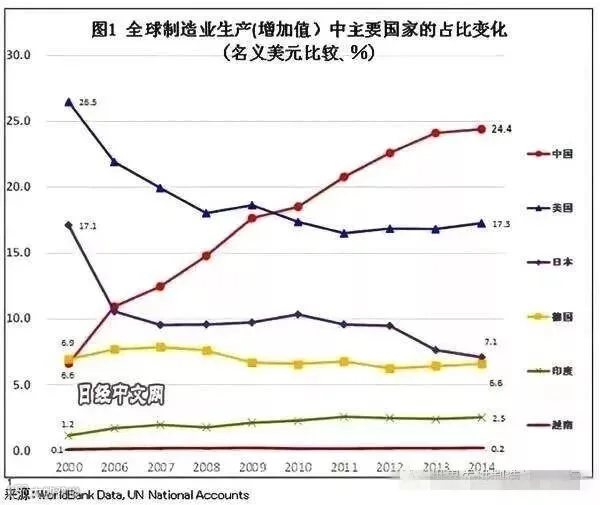 在制造业总产值上,“世界工厂”绝非浪得虚名,中国是当仁不让的世界第一。