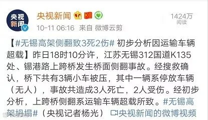 新闻报道中表示,经初步分析,上跨桥侧翻系运输车辆超载所致。