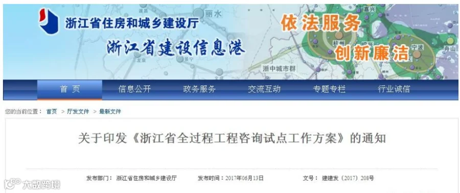 为认真贯彻党的十八大和十八届三中、四中、五中、六中全会精神,充分发挥市场对资源配置的决定作用,深化建设工程组织管理方式改革,根据《关于促进建筑业持续健康发展的意见》(国办发〔2017〕19号)和《住房城乡建设部关于开展全过程工程咨询试点工作的通知》(建市〔2017〕101号)要求,决定在全省全面开展全过程工程咨询试点工作。现将《浙江省全过程工程咨询试点工作方案》印发给你们,请遵照执行。