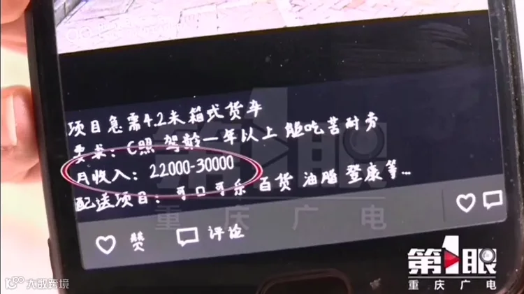 首先,此类公司宣传时着重强调“低门槛高回报”,只需要普通C1驾照就能干,而且还信誓旦旦说保底工资两三万。