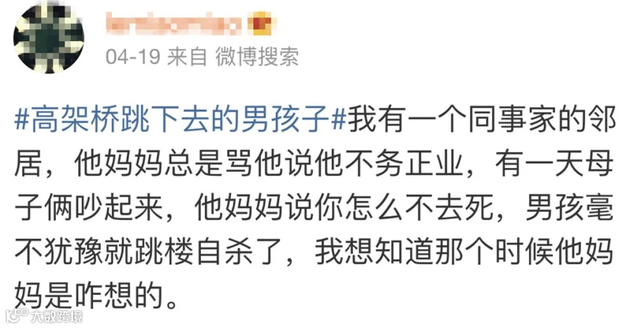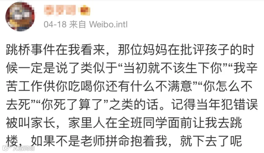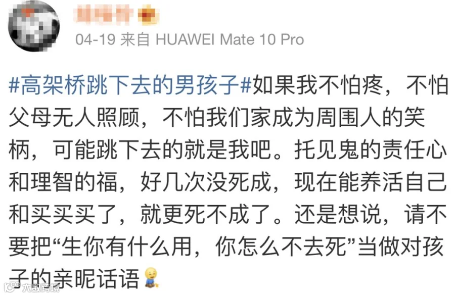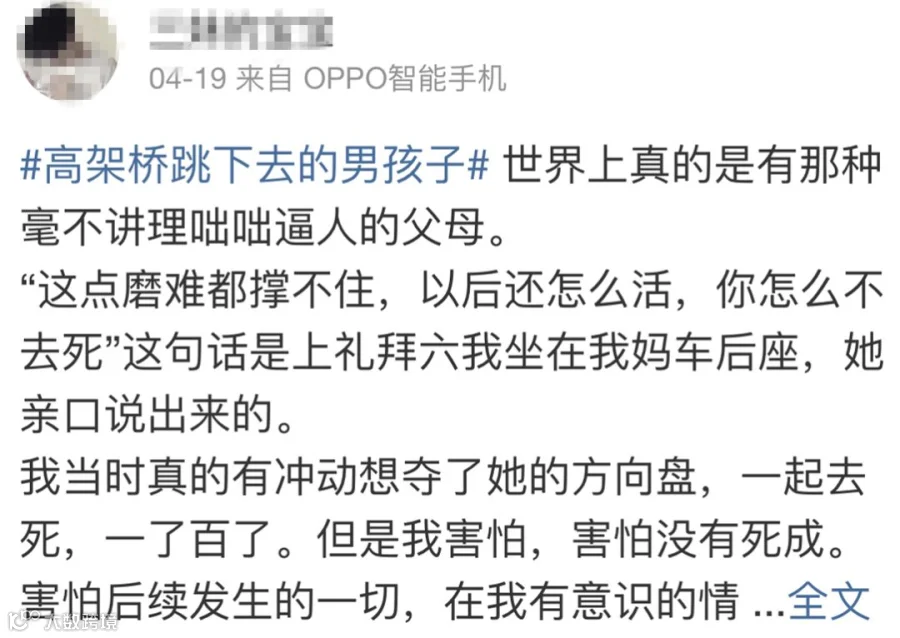 “17岁男孩跳桥身亡”事件,没想到能引起这么大的冲击波,在一部人指责男孩心理承受力太差时,很多很多人站出来表示理解: