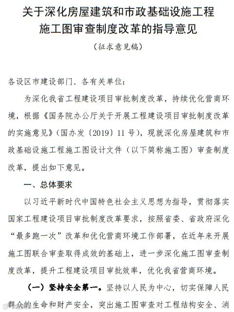 7月23日,浙江省住建厅发布《关于深化房屋建筑和市政基础设施工程施工图审查制度改革的指导意见(征求意见稿)》:
