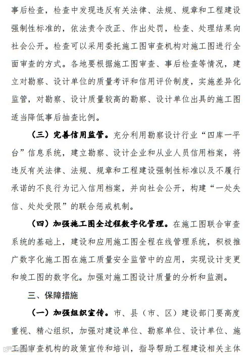 3、取消图审后,对施工图设计文件进行经常性“双随机”检查,相关费用采取政府购买服务方式解决。