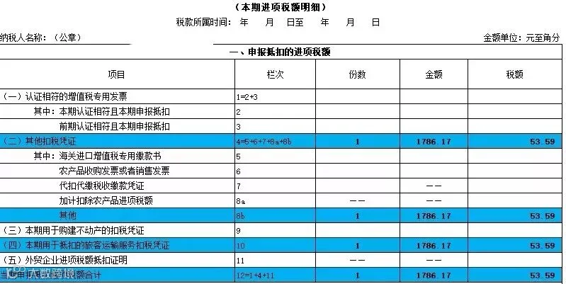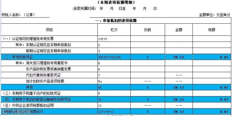 如果取得增值税专用发票,那不用说了,应该填写到第1、2栏次去。其他发票都应该填写到8b其他栏次中去,当然同时还要统计总额后同时填写第10栏。