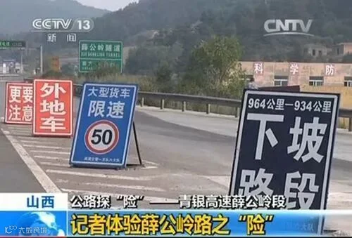 该路段是2013年交通部总结出十大危险路段之首的路线,青银高速汾阳至离石段,薛公岭934公里至964公里约30公里全是下坡弯路,尤其是在944-943公里之间的路段,落差达到68.4米,相当于22层楼高,并且车流量非常多,大部分为运煤车,下坡太快刹车失灵,事故频发并且致死率高,仅2008年就发生了435起,也被称为”血公岭“。