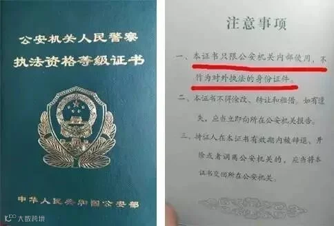 警察没有“执法证”,只有“执法资格证”,根据相关规定,该证书只限于公安机关内部使用,不作为对外执法的身份证件。