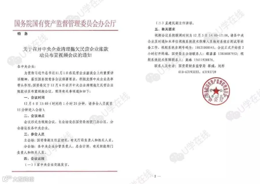 12月6日,国资委召开了中央企业清理拖欠民营企业账款动员布置视频会议,各中央企业分管负责人、总会计师等参加本次会议。对此,中央企业及地方政府迅速给出了回应。