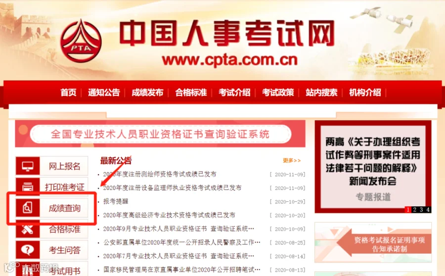 进入官网后,我们点一下左侧的“成绩查询”进入查询界面。