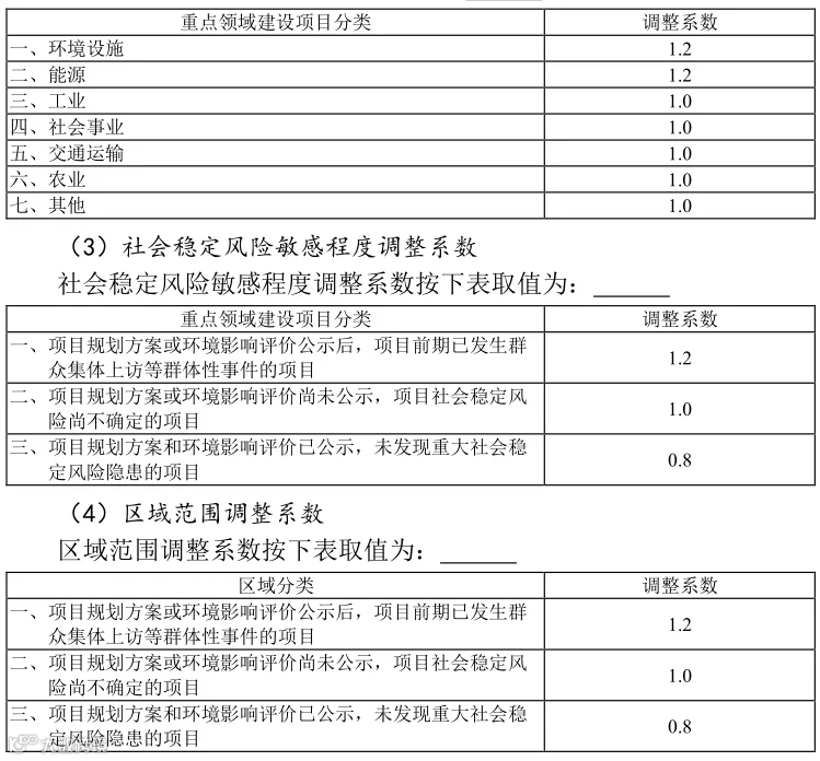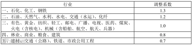 (2)行业调整系数