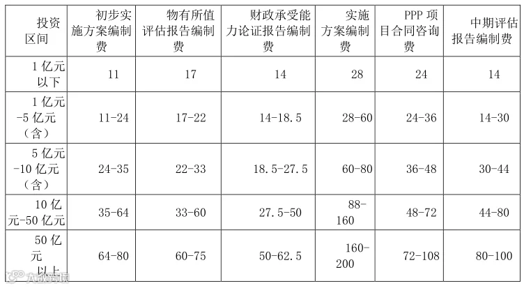 报告编制费、实施方案编制费、PPP 项目合同咨询费、中期评估报告编制