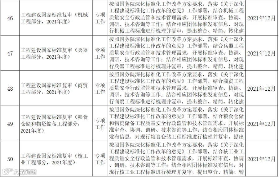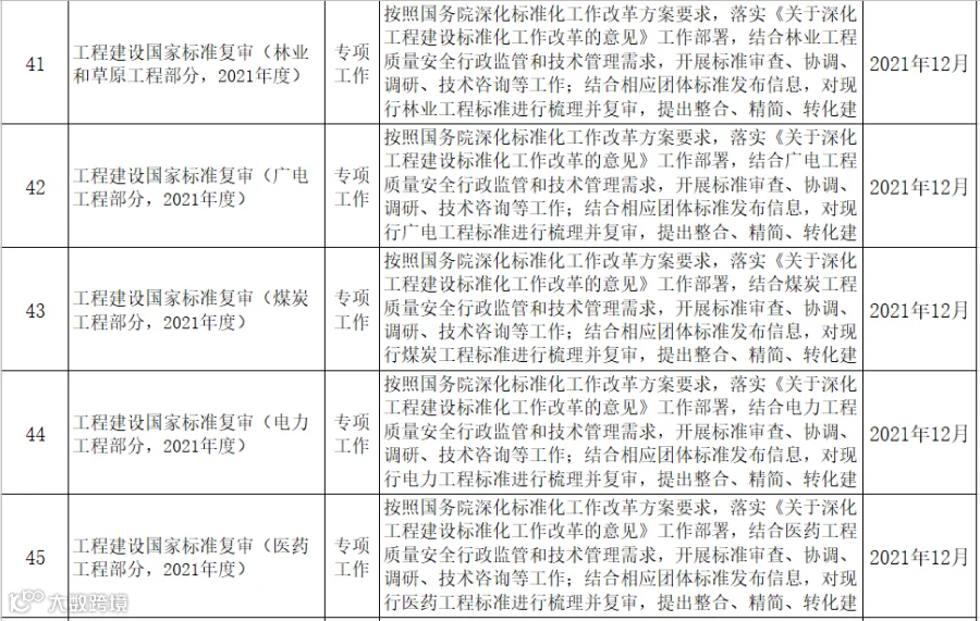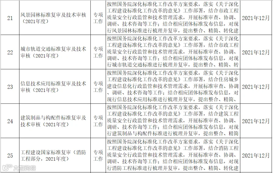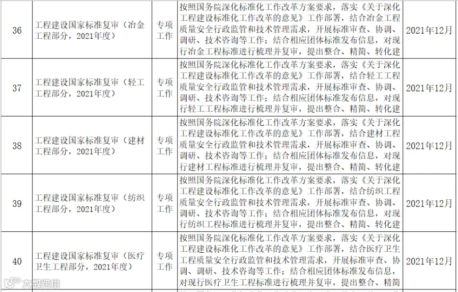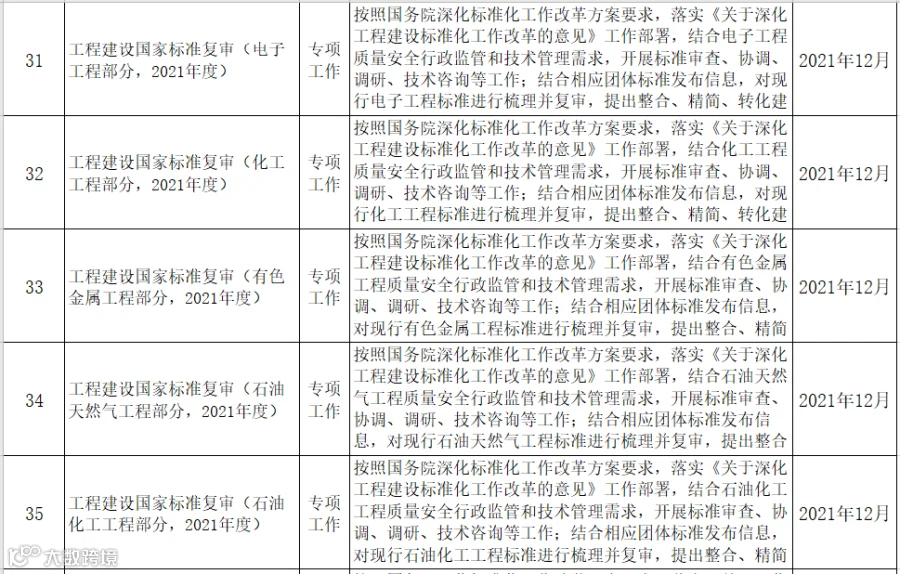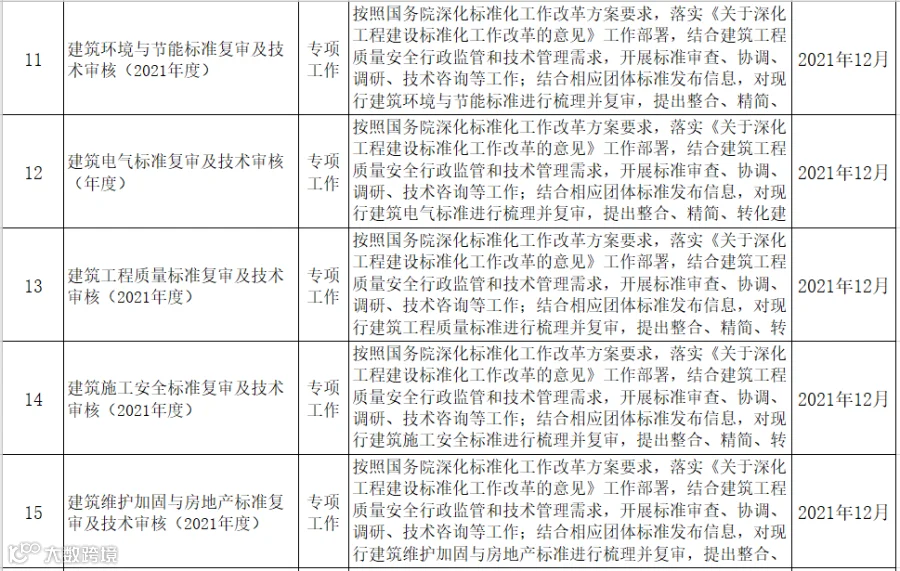 9月17日,住建部发布《2021年工程建设规范和标准编制及相关工作计划(征求意见稿)》,其中包括工程建设强制性国家规范、国家标准、行业标准等。