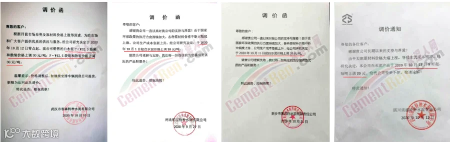 同期,河北、河南、湖北武汉、四川等多区域白水泥价格通知上调30元/吨。