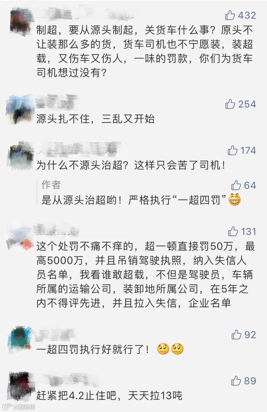 强烈建议从源头治超,不能只罚司机、更要罚货主、企业,真正做到“一超四罚”。