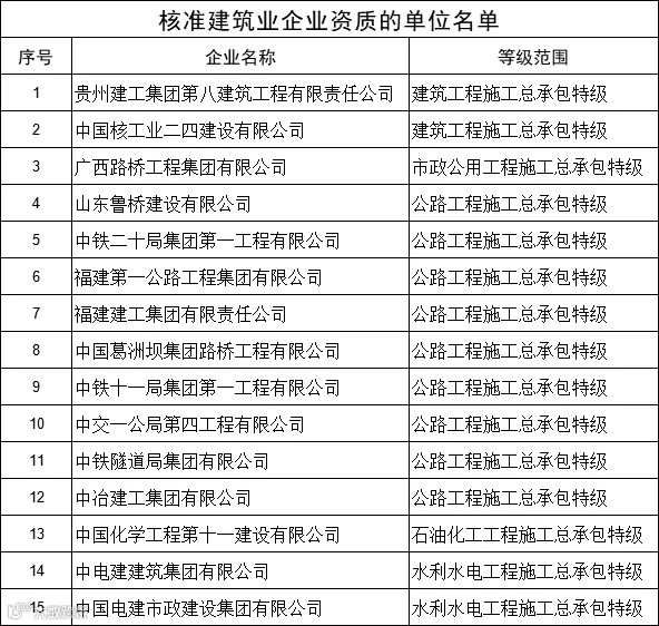 近日,住房和城乡建设部公布“2020年度第六批建设工程企业资质名单”。新增15家特级资质!