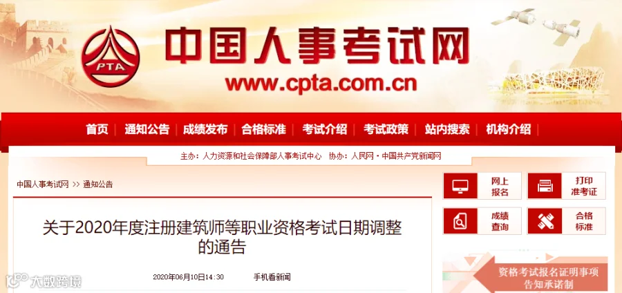 关于2020年度注册建筑师等职业资格考试日期调整的通告