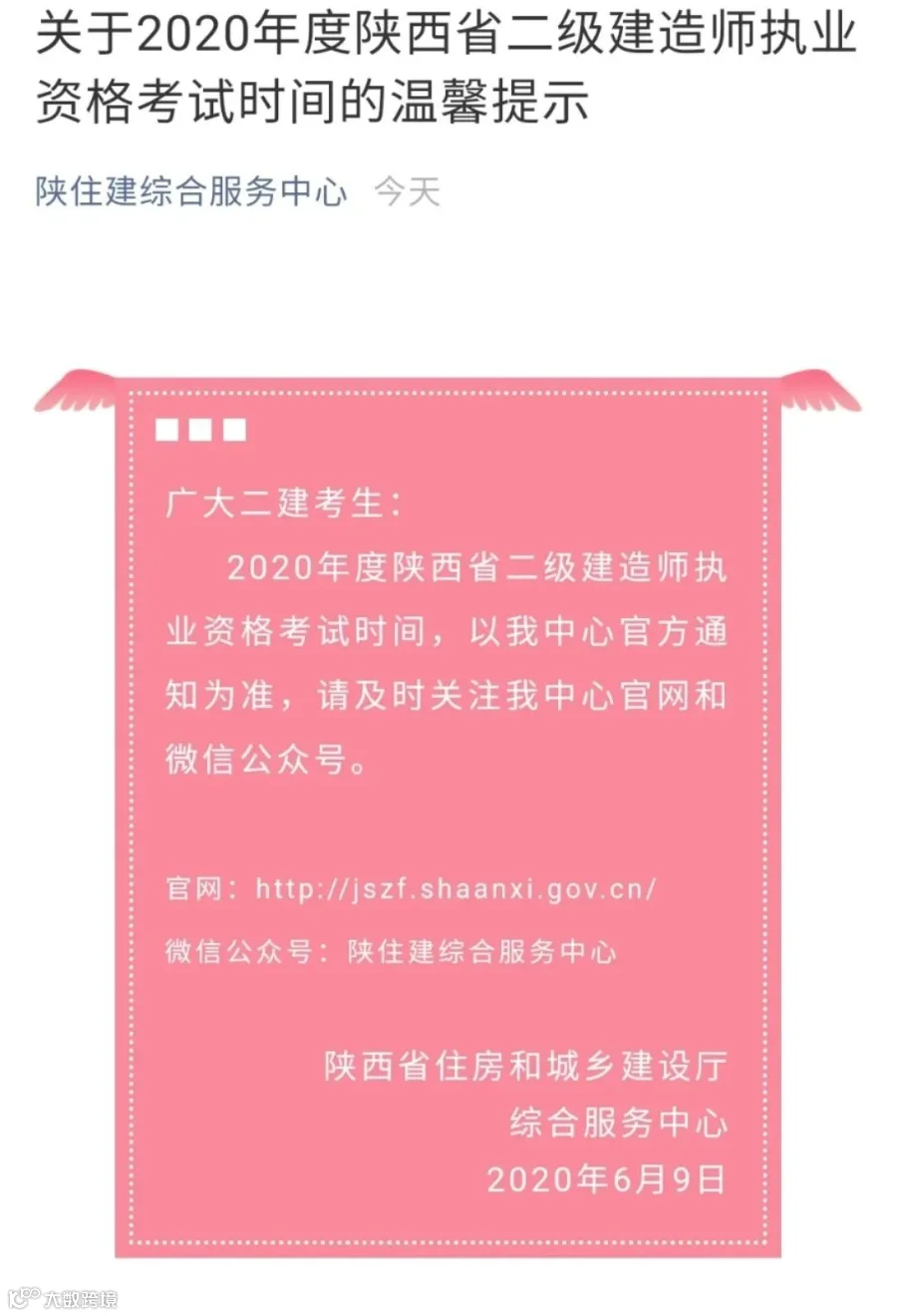 目前,官方网站并没有这份文件。就在昨天,陕住建综合服务中心发布了温馨提示:“考试时间以我中心官方通知为准”。