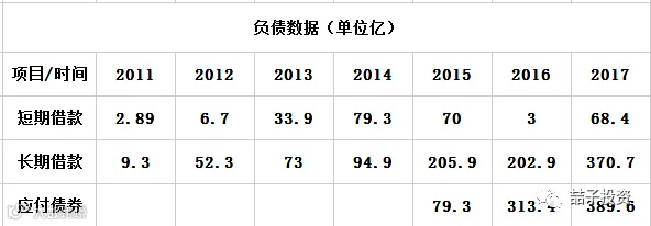 2017年末,短期借款+长期借款+应付债券=828.7亿![]()