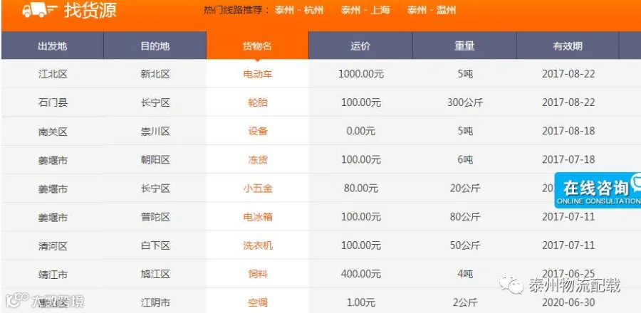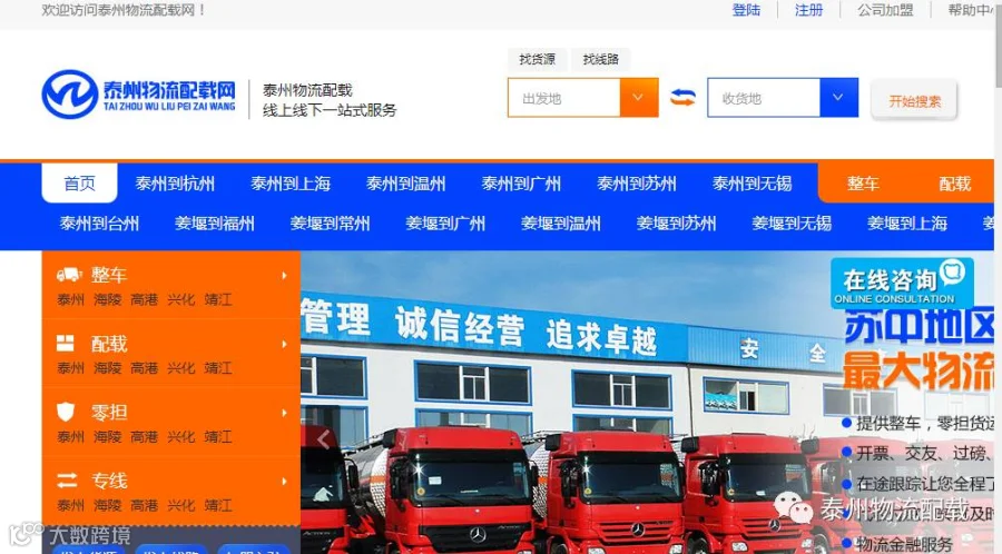 泰州物流配载网是泰州地区最大的物流信息网,是物流公司、货车司机、发货商、生产厂家的汇聚地,是物流信息最全面、实用性最强的专业物流行业网站,您可以查阅到海量物流车源、货源信息。