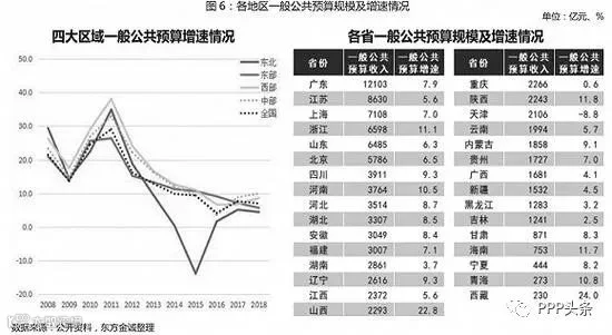 地方财政实力方面,一般公共预算收入东强西弱,中部崛起增速领先。