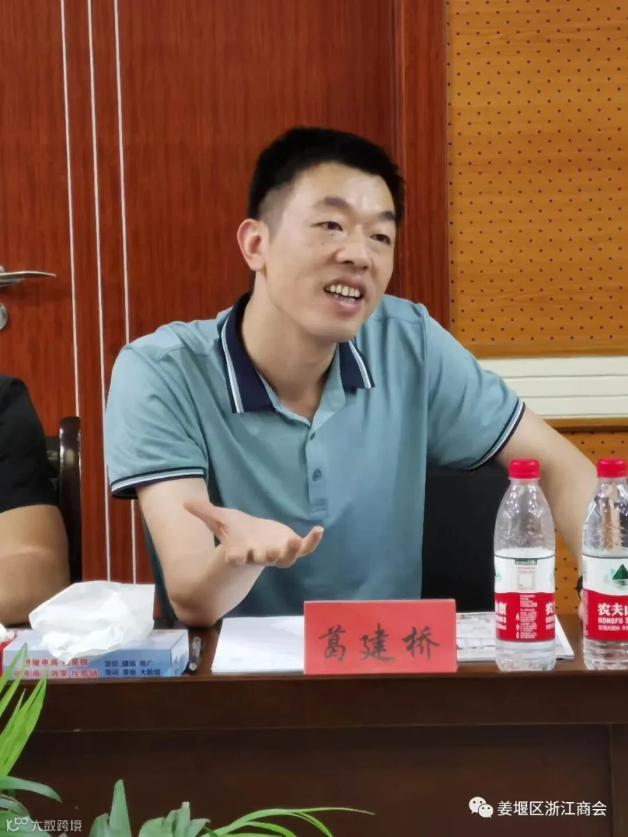 葛建桥会长在座谈会上讲话,他表示商会工作的重点是三方面:服务会员,让会员受益;服务姜堰,树立浙商形象;以商养会,促进商会发展。他说,今后商会要注重加强资源整合,积极帮助会员拓展市场,扩大销售。商会秘书处要编制会员产品(服务)目录,包装、推介会员产品(服务),促进会员企业走出姜堰、泰州,走向江苏、全国。