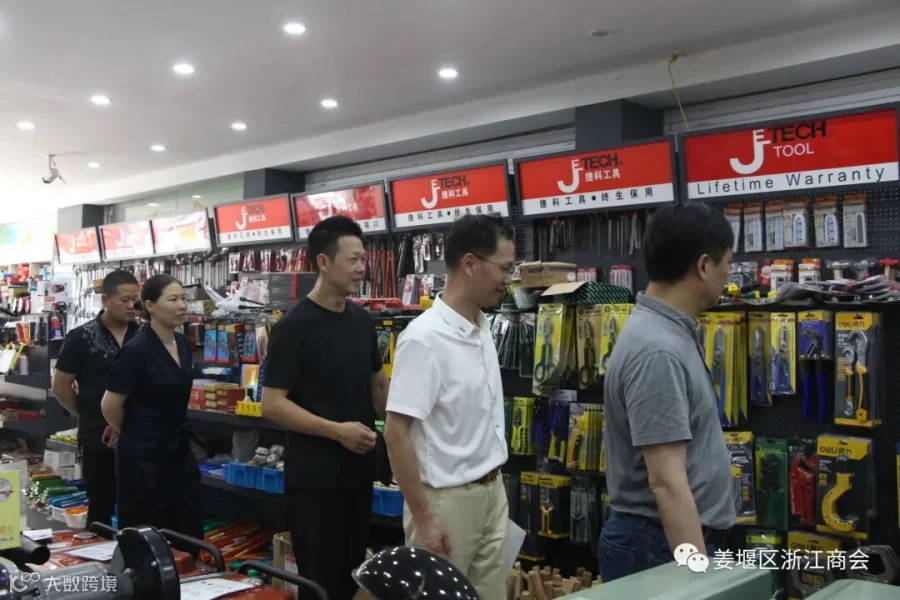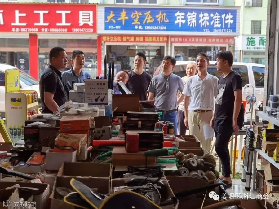 7月6日下午,姜堰区浙江商会走访华东五金城内会员企业。姜堰区政协副主席、工商联主席陈文德,会长葛建桥,商会特别顾问周才炳,执行会长傅南昌,监事长丁保清,秘书长陈旭耀,常务副会长吴志进、吴仁右、蔡祈校等参加了走访活动。
