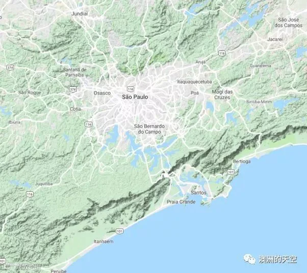 在巴西可以找到类似的地形。可以看到一座巨大的山脉挡住了海岸。这真是上帝的诅咒。这就是为什么巴西经济不那么好,无法发展制造业的原因。