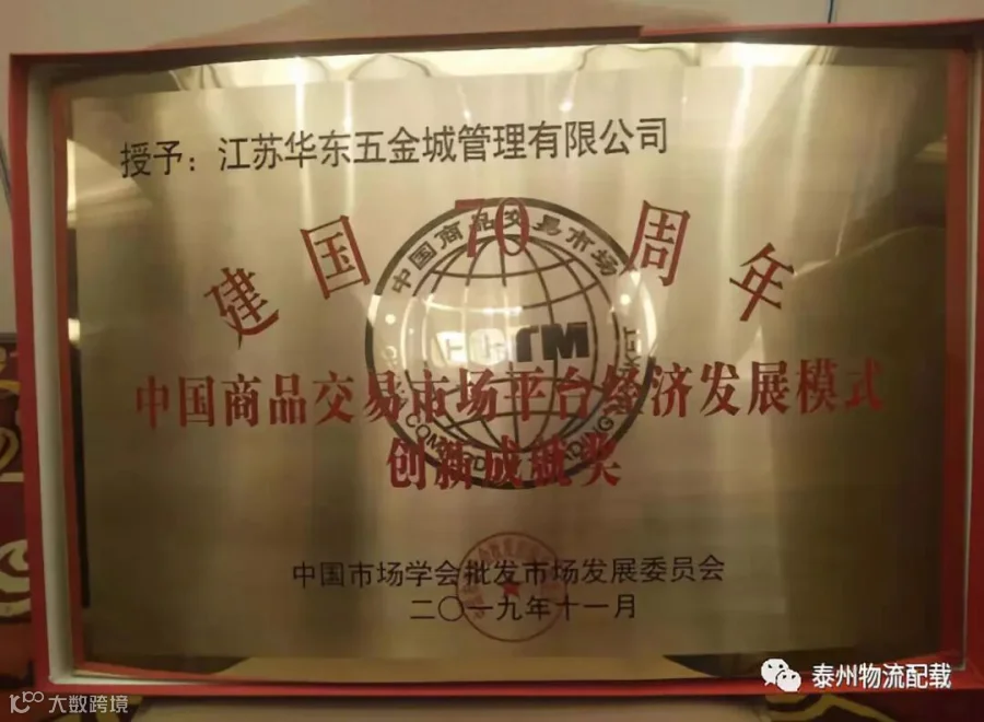 特刊:华东五金城获平台经济创新成就奖 行业首家