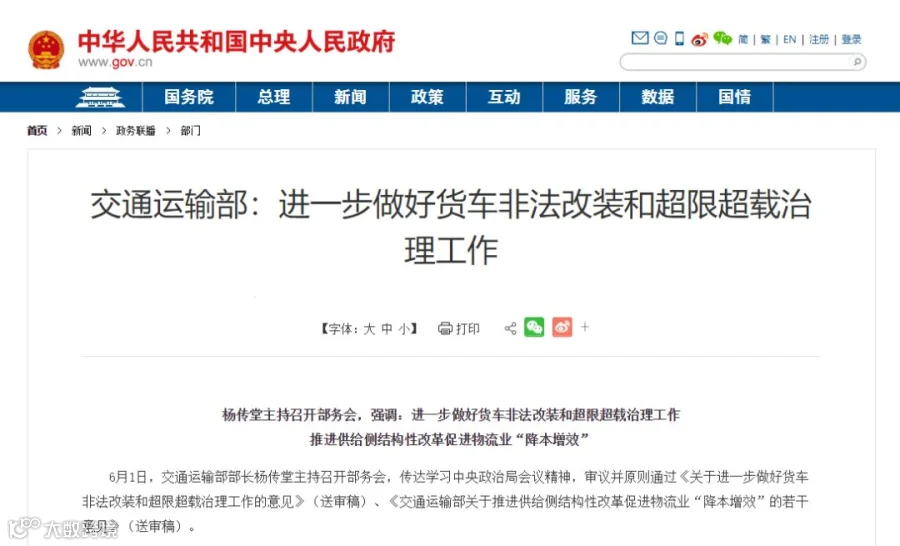 针对此问题,五部委发布了《关于进一步做好货车非法改装和超限超载治理工作的意见》,首次对路面治超的罚款和拦车环节进行了规范。