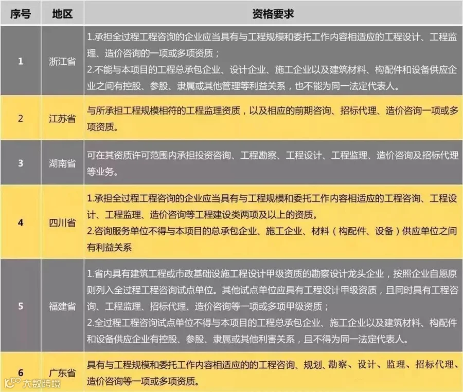 不同地区全过程咨询机构的资质资格要求一览表