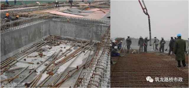 ①采用商品砼、汽车泵泵送浇筑。每层厚度不超过300mm,振捣密实。
