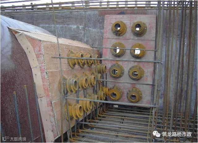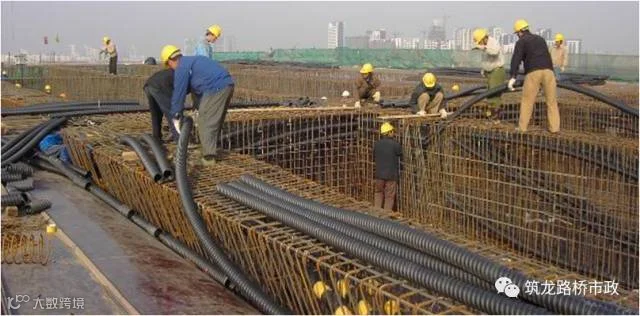 (1)、钢筋安装位置与预应力管道或锚件位置发生冲突时,应适当调整钢筋位置,确保预应力构件位置符合设计要求。