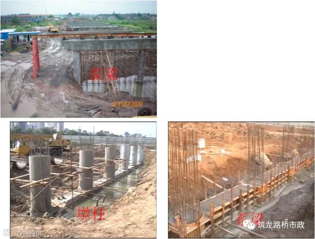 该部分统称为桥梁下部结构,工艺流程相同,通俗讲就是钢筋、模板、混凝土。
