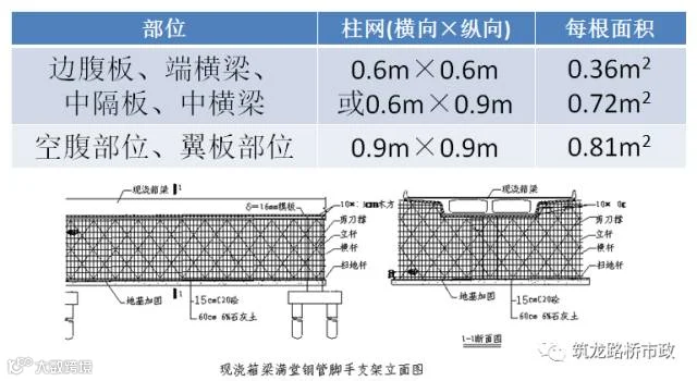 2、支架布置 碗扣式支架横杆步距为1.2m时,每根立杆设计荷载为3t,横杆步距为0.6m时,每根立杆设计荷载为4t。荷载组合按计算结果进行布置。通常:
