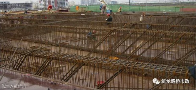3、基坑避免超挖,已经超挖或松动的部分要清除,底部进行夯实处理,可将凿除桩头的废料铺于坑底,整平夯实,保证基底有一定的承载力,防止在钢筋绑扎、模板支立及混凝土浇筑过程中发生沉降。