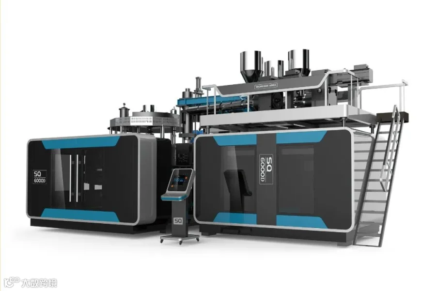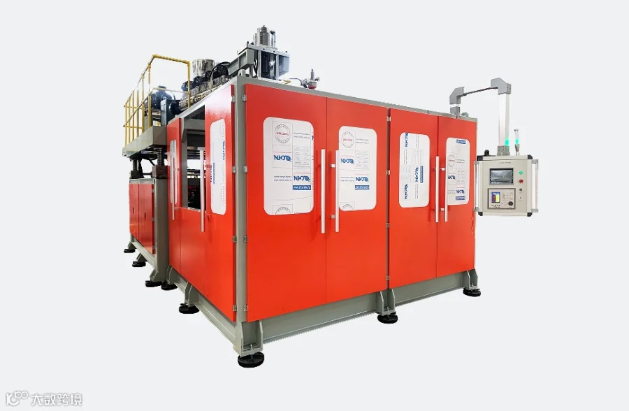 福德隆-5L六模高速旋转吹塑机,用于制作5L桶,六工位生产,多根螺杆设计,螺杆挤出采用伺服电机提供动力,合模采用液压油泵提供动力,油电混配置,节能降耗,绿色环保,机器性能稳定。
