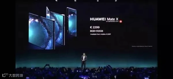 2月14日晚,在西班牙巴塞罗那举办的2019世界移动通信大会上,华为正式发布了首款5G折叠屏手机HUAWEI Mate X,8GB+512GB组合售价2299欧元(合人民币17498元,1欧元=7.6112人民币)。同时,华为宣布,这款手机将在2019年年中上市。