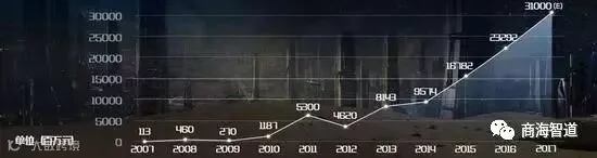 我们来看这个陡状增长的曲线,2015年、2016年、2017年,整个中国百货行业出现了高速增长,甚至在2017年的风险投资案例中,对大型零售超市的并购案已经发生了很多起,而且都是中国排在前几位的互联网公司展开的并购。