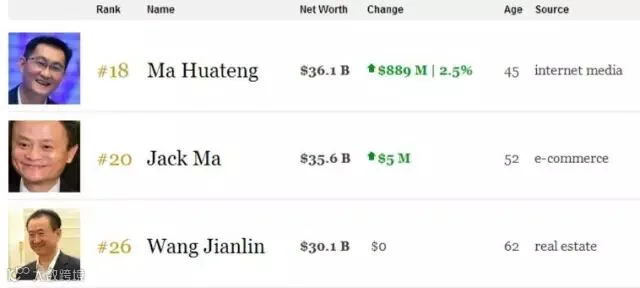 据福布斯实时富豪排行榜,马化腾的个人财富361亿美元,超过了马云的356亿美元。