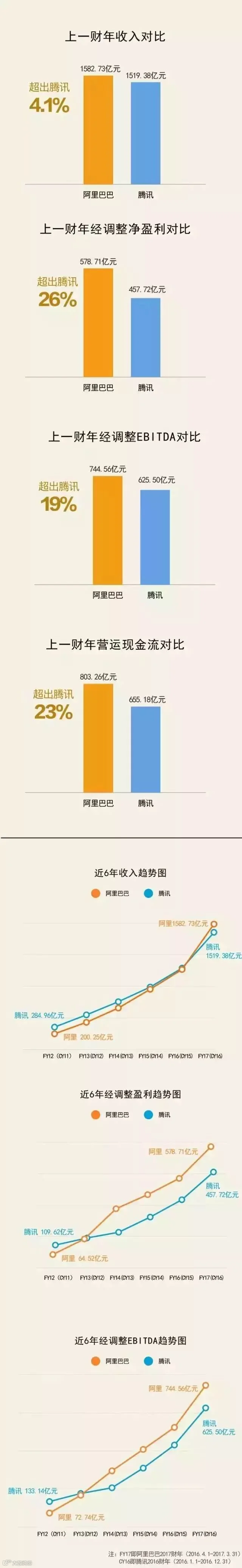 阿里在五年前,全年收入64.17亿元,不及腾讯当年Q4一个季度的利润(79.22亿)。而目前阿里在核心指标上全面超越腾讯。