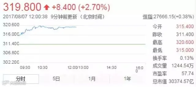 前日,腾讯控股(00700.HK股价继续上涨,截至午间收盘,涨2.70%,报319.8港元,市值达30375港元,约3883亿美元,阿里市值3878亿美元,腾讯市值超越阿里。