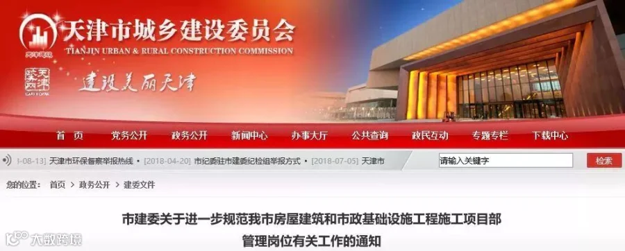 10月8日,天津住建委下发文件,对工程施工项目部人员管理提出新要求。