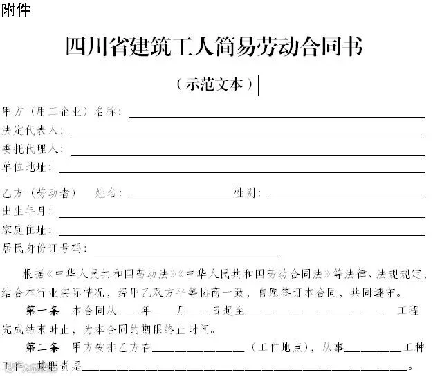 附件:四川省建筑工人简易劳动合同书(示范文本)