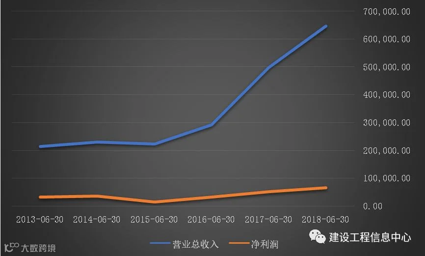 从近年来的半年报来看,公司近两年的营收和净利润增幅非常强劲。据2018年半年报披露,公司上半年收到36个订单,合同金额高达339.48亿元。